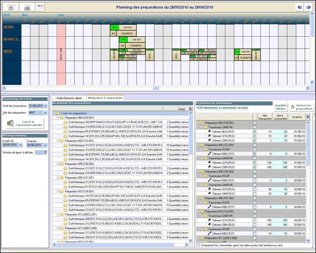 - Tool procurement based on the production plan (MRP) : When the production schedule has been loaded, NCSIMUL TOOL computes the tool requirements and makes order proposals. The new module is based on sophisticated rules for defining consumable and regrindable tools, and also factors in the strategies for mounting the tools on the machines, and the lead times for procurement and regrinding. The module can be used to limit ordering to the requirements of the production plan, thereby optimizing procurement and inventory.