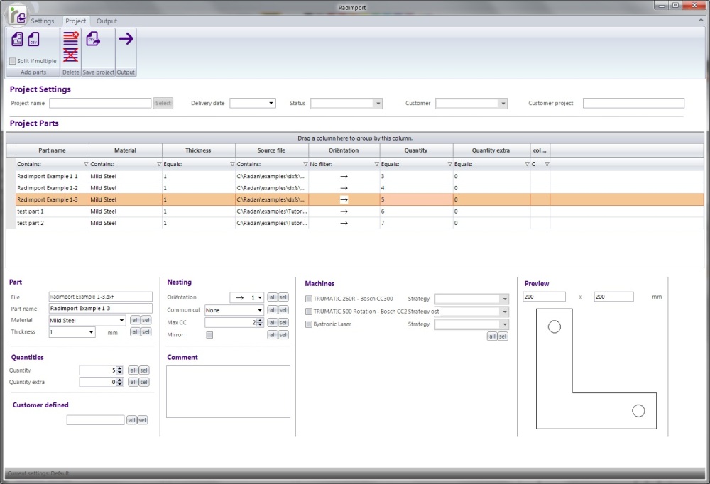 Dave Caughley Product Manager for RADAN’s new Logistics Group, says for many sheet metal fabricators the work to prepare parts for nesting is extremely time consuming. Also, once Radimport has created the RADAN parts, the geometry files can be converted to a nest project. “The user has the option to edit the quantities and other properties of the parts before creating the Nest Project. Radimport can automatically launch the RADAN Nester to start nesting straight away.”