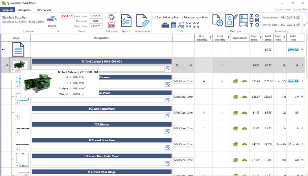 Radquote not only competitively calculates costing on sheet metal, but all aspects of quoting are now included – such as cutting, bending, welding, painting and assembly.